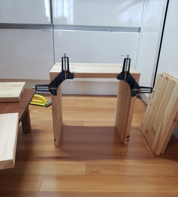 보관장 만들기 과정샷은 아니지만. 보관장을 만들기 위한 가장 기본적인 과정. 클램프는 필수임.
