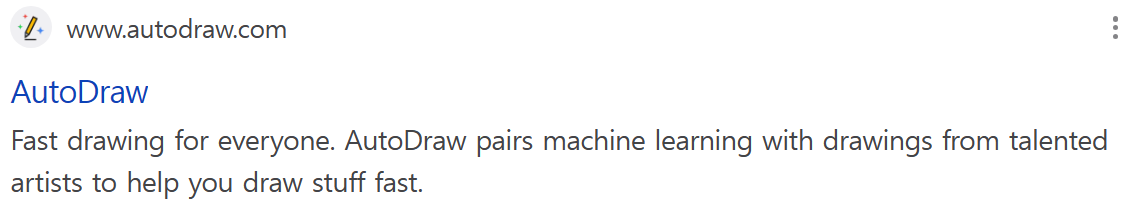 AutoDraw (자동 그리기)는 새로운 종류의 그리기 도구입니다. 머신 러닝과 재능 있는 아티스트의 그림을 결합하여 누구나 시각적으로 무엇이든 빠르게 만들 수 있도록 도와줍니다. 다운로드할 것이 없습니다. 결제할 필요도 없습니다. 스마트폰, 태블릿, 노트북, 데스크톱 등 어디서나 사용할 수 있습니다.