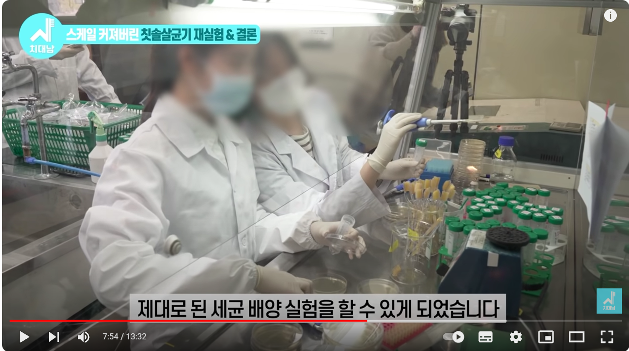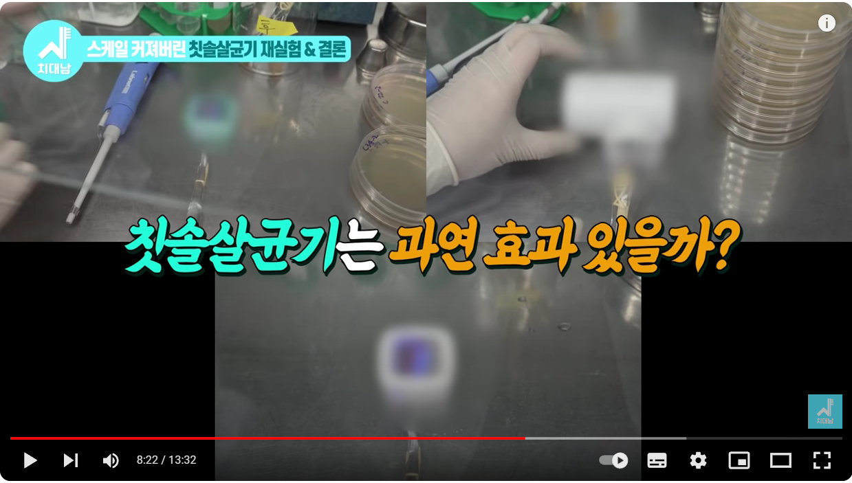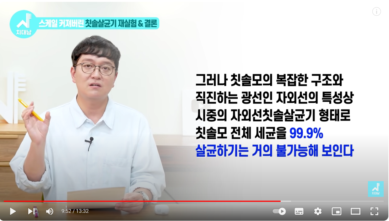 이렇게 칫솔 자체가 살균되는 실험은 개인이 하기에는 스케일이 너무 커서