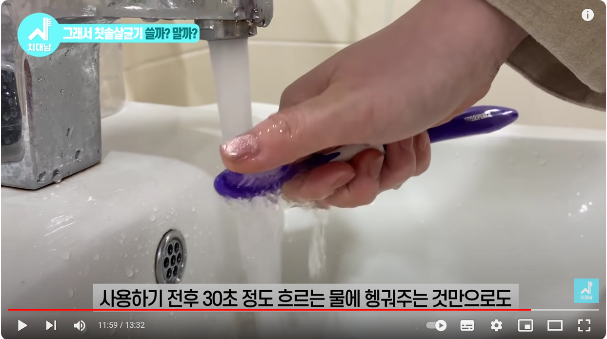 실험설계를 할 때, 실제 사람들이 칫솔하고 흐르는 물에 헹군 후, 칫솔 살균기에 넣으면 어떨지?