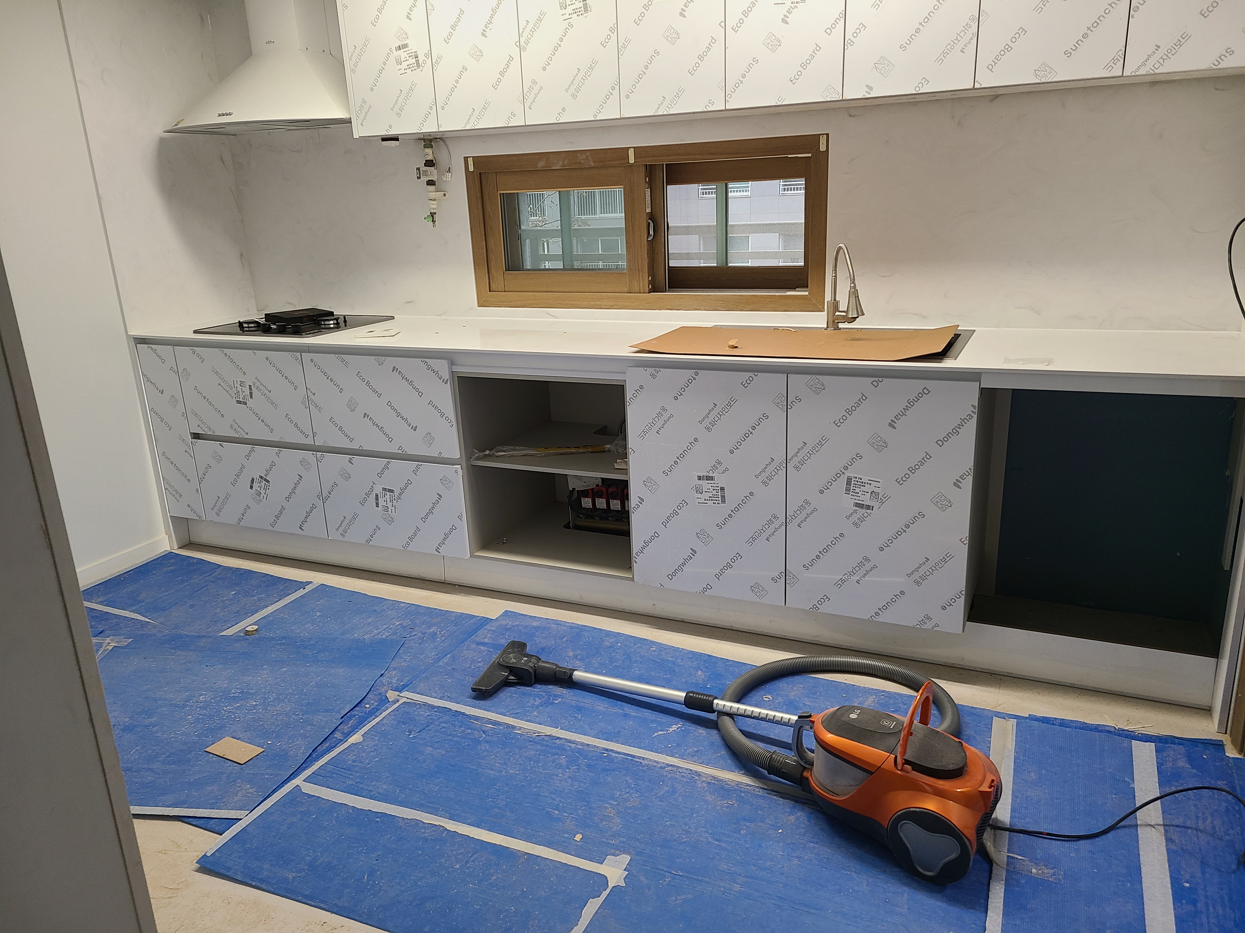 씽크대 250만(ㄷ자형 → 11자형) : 비용절감. ㄷ자 형그대로 했으면 비용 더 들었을 듯. 아이랜드는 기성품 사용.