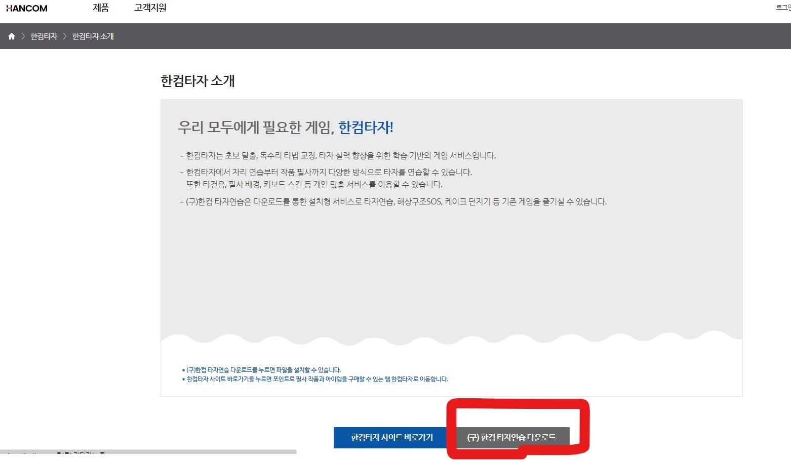 3. (구)한컴타자연습 다운로드를 클릭하여 컴퓨터안에 다운받습니다.